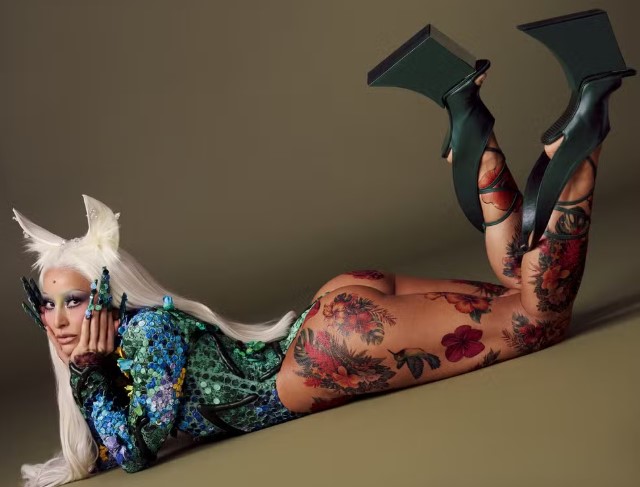 A peça, concebida como uma segunda pele, apresentou estrutura marcante, recortes estratégicos e aplicações tridimensionais que reforçaram o caráter artístico do figurino. A modelagem destacou as formas do corpo e dialogou com a tradição criativa da grife fundada por Elsa Schiaparelli, conhecida por suas criações ousadas e experimentais.