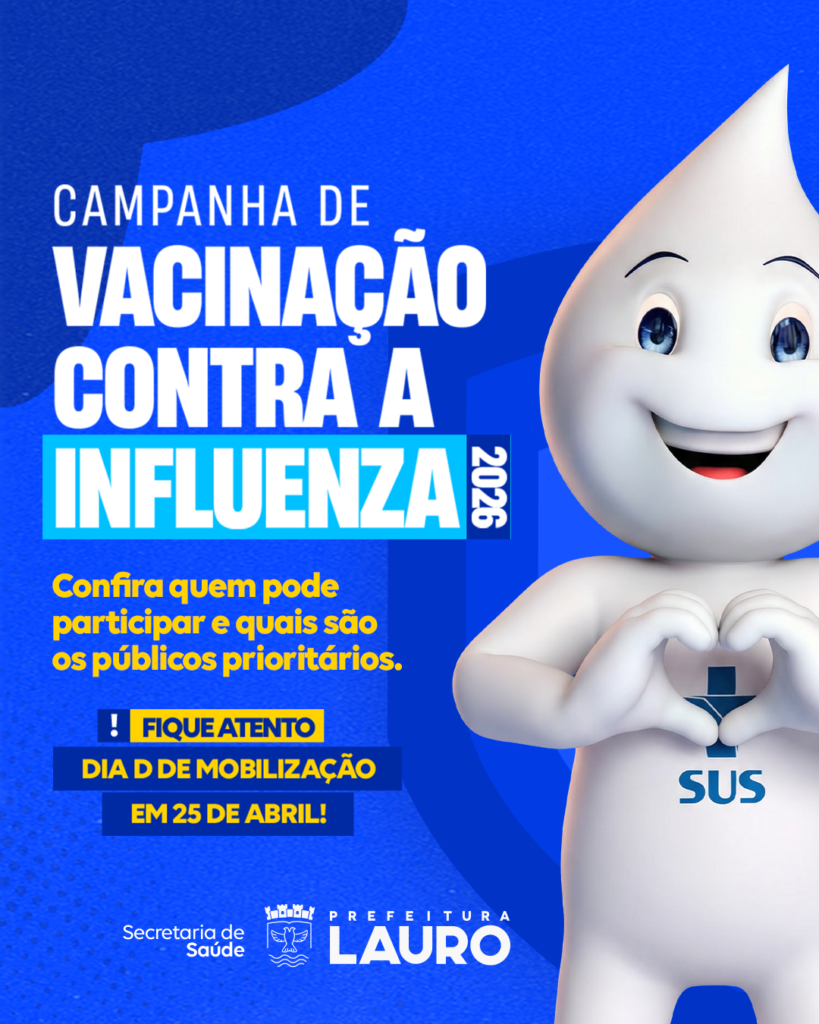 A Prefeitura de Lauro de Freitas, por meio da Secretaria Municipal de Saúde (SESA), realiza neste sábado (25/4) o Dia D de vacinação contra a Influenza. Para ampliar o acesso da população, todas as Unidades de Saúde da Família (USFs) estarão abertas das 8h às 15h, sem interrupção para almoço, ofertando gratuitamente a vacina para os grupos prioritários.