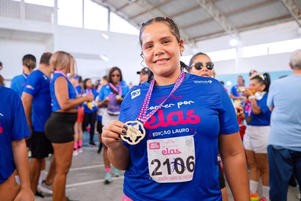 Mais de 5 mil pessoas ocuparam as ruas do Centro de Lauro de Freitas, na manhã deste domingo (26/4), para participar da corrida Correr por Elas. O evento, que contou com o apoio da Prefeitura de Lauro de Freitas, por meio da Secretaria Municipal da Mulher, Políticas Afirmativas, Direitos Humanos e Promoção da Igualdade Racial (SEMPADHIR), foi realizado pela Associação Abrace Camaçari e dedicado à luta contra o feminicídio e à solidariedade.Por volta das 6h, os atletas já iniciaram o aquecimento, e logo em seguida após dada a largadas, saíram da frente do Ginásio Municipal de Esportes, localizado na Rua Euvaldo Santos Leite, onde puderam praticar a corrida em um percurso de 5km.Entre os corredores, estava a prefeita Débora Regis, que destacou o impacto da iniciativa e a importância da luta em defesa das mulheres. “Essa causa é de todos nós, por isso fico feliz em ver que as pessoas da nossa cidade estão aderindo. A corrida não é apenas uma competição esportiva, é um grito coletivo por respeito e dignidade”, frisou a gestora do município.Para a presidente do Associação Abrace Camaçari, Renata Tais, o sentimento foi de gratidão na realização de mais uma etapa. “É um movimento que vem crescendo, e nós do Abrace temos um propósito que é fortalecer e cuidar das mulheres, além de poder fazer a doação para as famílias que necessitam. Lauro foi um sucesso, e vamos expandir para mais cidade. Essa luta não pode parar”, disse. Participando da sua primeira corrida, a técnica de enfermagem, Eliedna Brandão, de 34 anos, disse ter gostado muito do projeto. “Achei muito interessante, gostei muito da ideia de correr por elas, na luta contra o feminicídio. Além disso, com a doação do alimento vamos ajudar muitas famílias que estão precisando. A corrida foi maravilhosa, não quero parar mais”, finalizou.Apoiando a causa das mulheres, o supervisor industrial, André Guerra, de 42 anos, salientou a importância da luta feminina. “A iniciativa em prol das mulheres foi muito legal, ainda mais no momento e no tempo que a gente vive hoje. Nós temos que fortalecer não só a luta da violência contra a mulher, mas todos os direitos que elas vêm lutando ao longo do tempo”, destacou o atleta.Após a chegada, os participantes receberam uma medalha e um kit lanche, e ainda puderam se divertir ao som da cantora Barbinha Oliveira, que não deixou o público parado, reforçando a importância e fortalecimento da causa. O evento, também contou com o apoio de diversas secretarias da gestão de Lauro de Freitas, que deram suporte e proporcionaram uma ação de sucesso na cidade.